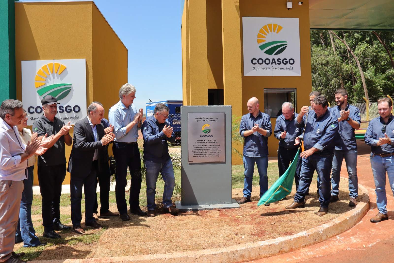 A Cooasgo (Cooperativa Agropecuária de São Gabriel do Oeste) inaugurou na manhã dessa quinta-feira o acesso operacional e amplo pátio de estacionamento para carga e descarga de sua nova fábrica de rações, ato que marcou ainda o 33º aniversário de fundação do empreendimento. O secretário de Meio Ambiente, Desenvolvimento, Ciência, Tecnologia e Inovação (Semadesc), Jaime Verruck, representou o Governo do Estado no evento e descerrou as placas inaugurais ao lado do presidente da Cooasgo, Rainer Josef De Goehr e demais diretores da empresa e autoridades convidadas.
